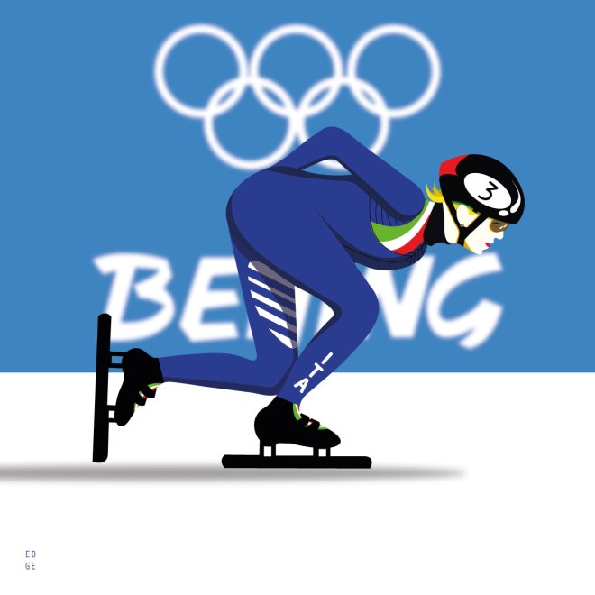 La spinta sincrona di ogni muscolo. La geometrica liturgia dei movimenti. Scivoli via prendendo velocità nell’ellittica accelerazione di un’orbita sempre più stretta. In un equilibrio sottile, sulle lame affilate che solcano il ghiaccio, in uno spiraglio che solo i tuoi occhi sanno leggere, intercattare il varco in cui infilare una curva che ti slancia verso un dorico finale.